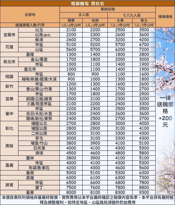 🙋♀️🙋♂️另外提供台中清泉崗機場/高雄小港機場/全台港口接駁